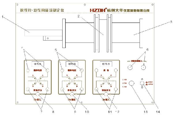 DH4512型霍尔效应实验仪由实验架和测试仪二个部分组成。图1-1为DH4512型霍尔效应螺线管-双线圈实验架平面图;图1-2为DH4512型霍尔效应测试仪面板图。
