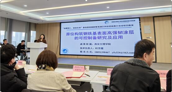 活动中,叶芳霞就“原位构筑钢铁基表面高强韧涂层的可控制备研究及应用”科技成果进行路演,就项目背景、行业现状、商业模式等内容,展示了原位构筑钢铁基表面高强韧涂层的可控制备的技术优势和广阔市场前景,推介项目收获了来自政府和企业等多方的高度好评。吴神丽获得莲湖区优秀技术经理人荣誉称号。
