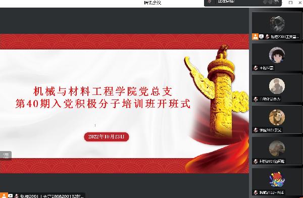 在党的二十大闭幕之际,在全校师生齐心抗疫的时刻,为做好员工党员发展和教育培养工作,切实提高入党积极分子理论水平和政治素养,增强对国家、民族的归属感和认同感,必一运动于10月23日通过线上方式举行第40期入党积极分子开班仪式。参加本次会议的有经理助理杜丽娜、员工第一党支部书记戴玉珊、第二党支部书记任小芳、第三党支部书记张汝淼、分团委副书记王天富以及第40期入党积极分子,会议由党总支组织委员聂星主持。