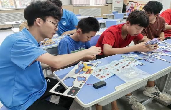 7月6日上午,活动伊始,支教队员与孩子们通过自我介绍相互了解从而达到了“破冰”的效果,随之带领孩子们进行科技DIY“机械拼装”活动,队员也结合自己的专业向大家讲解相关的科学文化知识。为鼓励孩子们积极地参与活动,支教队特地将拼装好的机械玩具作为参与活动的奖励。