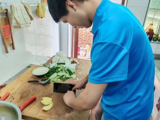 7月7日清晨,阳光透过树叶的缝隙,洒在必一运动支教队员与东周儿童村的孩子们身上,为这天的活动拉开了序幕。支教队员们精心准备了一堂生动而深刻的红色教育课,旨在让孩子们在心灵深处种下爱党爱国、铭记历史的种子。在课堂上,刘鑫引领孩子们走进了红色文化的殿堂。他通过展示各种旗帜的图片,耐心细致地讲解了党旗、国旗、军旗、团旗以及少先队旗的象征意义和历史背景,激发了孩子们对国家和民族的自豪感与责任感。孩子们与刘鑫老师形成了良好的互动氛围。午餐前,贾文博、晋杨阳两名支教队员主动请缨,协助厨房准备午餐。午后,阳光正好,微风不燥。西柏坡精神宣讲团的彭英杰走进了课堂,他深情地讲述了西柏坡时期中国共产党人艰苦奋斗、勇于胜利的光辉历程和伟大精神。通过一个个生动的故事和鲜活的例子,彭英杰让孩子们理解了西柏坡精神的核心内涵和时代价值,更在他们幼小的心灵中种下了红色基因的种子。