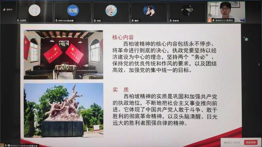 8月4日,老员工青言青语宣讲团面向材料师生党支部员工党小组开展西柏坡精神主题宣讲暨党小组专题活动,激励广老员工党员努力学习专业知识,在促进公司建设“最懂西安”应用型高水平城市大学中担当作为、干事创业。党小组全体党员、入党积极分子参会。活动由入党积极分子刘翔翔组织,员工党员、宣讲团成员彭英杰主讲,教师党员魏侨主持。