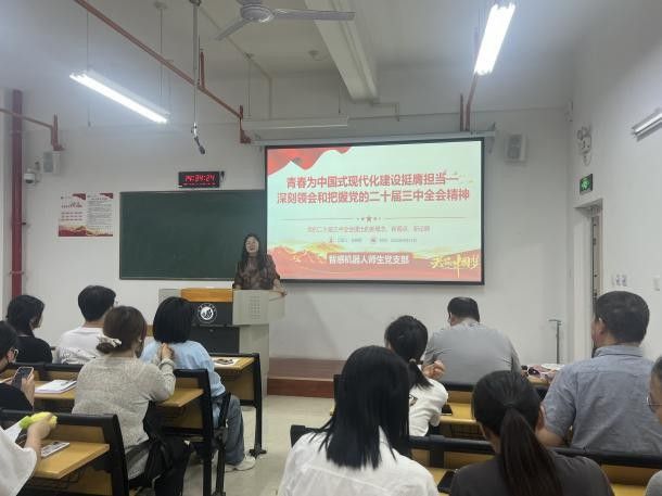 会上,支部书记张晓丽围绕《青春为中国式现代化建设挺膺担当——深刻领会和把握党的二十届三中全会精神》为题,详细阐述了进一步全面深化改革的主题、重大原则、重大举措、根本保证。组织委员张佳婧传达《习近平在全国教育大会上强调紧紧围绕立德树人根本任务 朝着建成教育强国战略目标扎实迈进》及《培养德智体美劳全面发展的社会主义建设者和接班人》等文件精神。从根本上着力加强对师生党员的思想引领,切实把思想和行动统一到全会精神上来,引导党员在公司高质量发展中贡献青春力量。