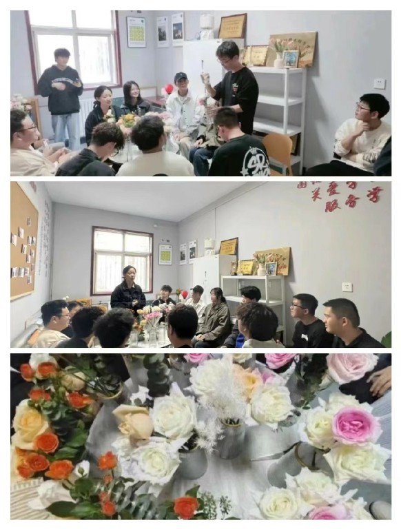 活动伊始,魏侨老师向同学们介绍了花艺的有关知识,包括素材类型、插花技巧、花语常识等。随后大家纷纷选定花材,通过剪裁等方式进行自由创作。