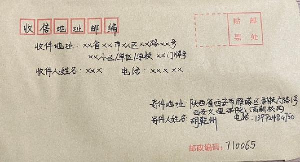 ·大四毕业生:严格按照图片中挂号信寄件格式填写,收件地址应为本人常住地,心理部将在一年后贴上邮票将信按时寄出。
