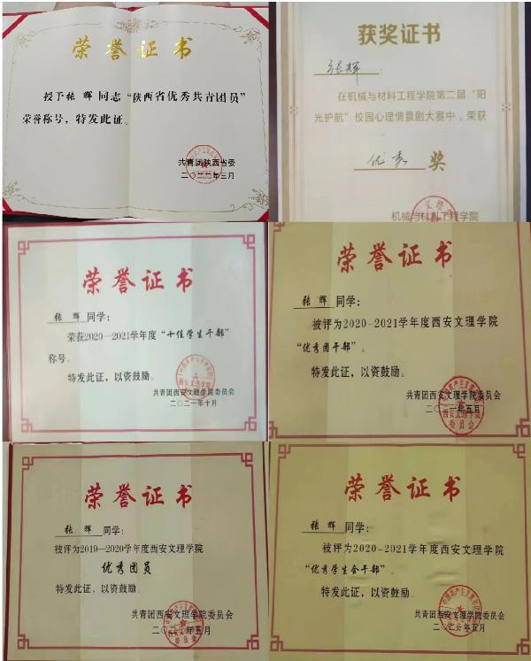 2020-2021年度荣获陕西省优秀团员荣誉称号;