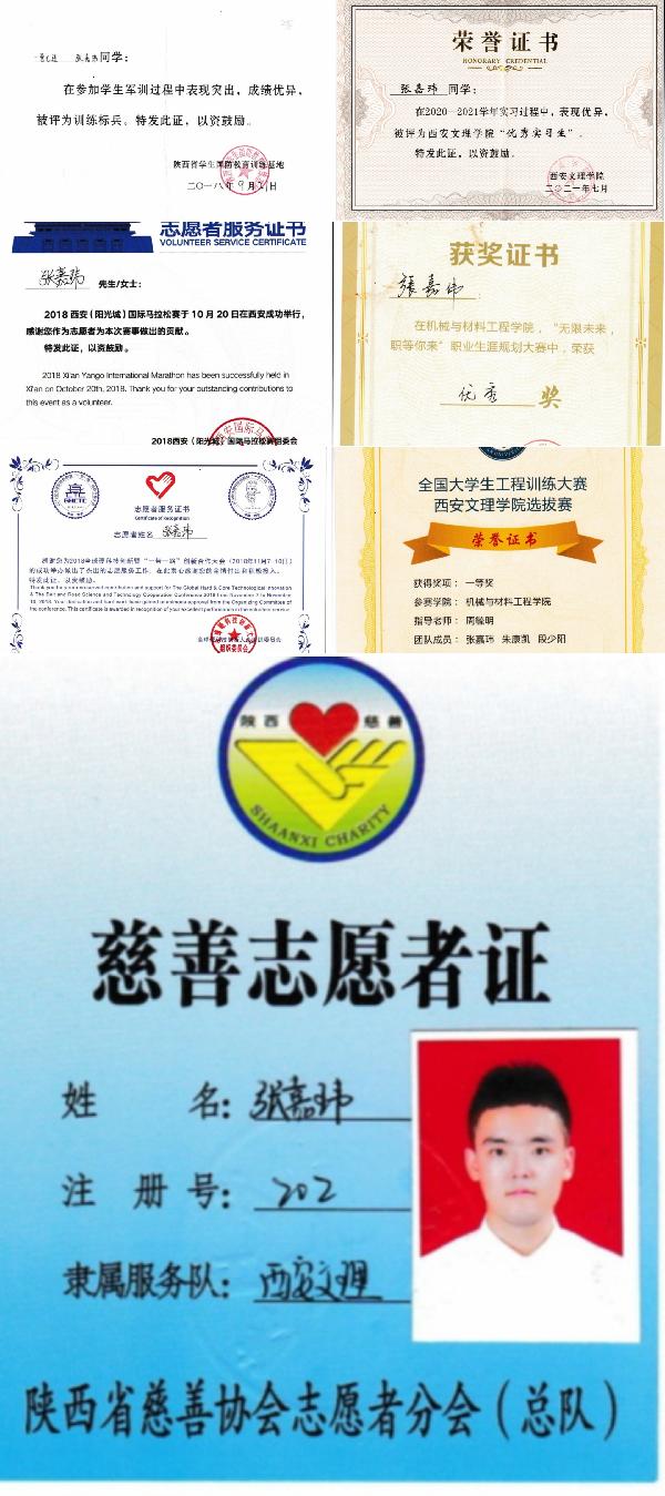 2021年荣获陕西省第七届工程训练大赛三等奖;