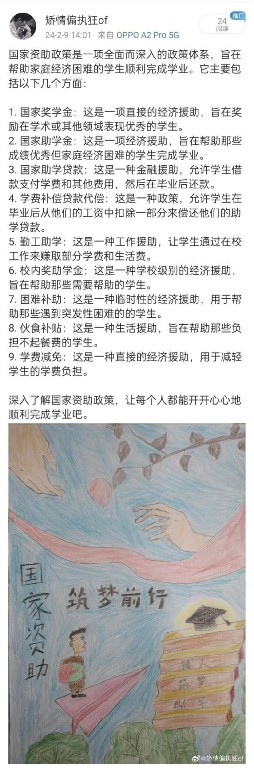 我在微博上介绍了一些资助政策,包括奖学金、助学金、勤工助学岗等。这些政策的目的是帮助家庭经济困难的员工顺利完成学业,实现人生价值。在宣传的过程中,有一些家庭困难的同学向我咨询,他们因为无法承担学费和生活费而担忧,但在他们了解到各种资助政策后,表示心中担忧的乌云一扫而去。