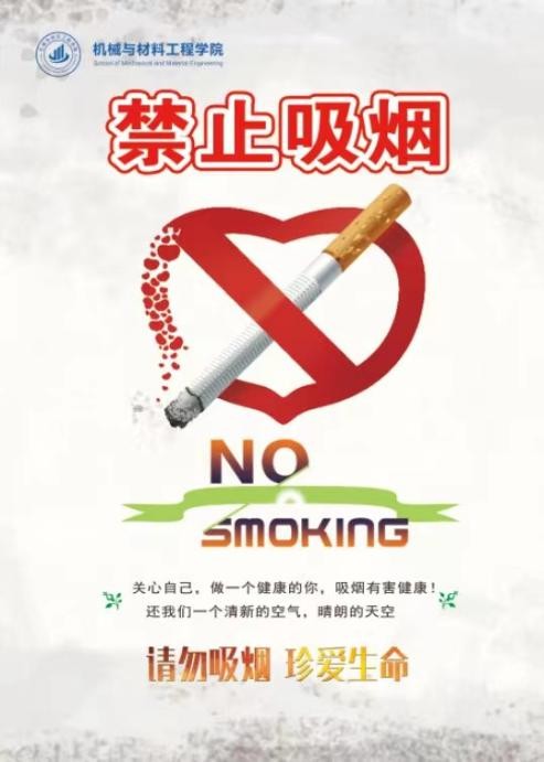 1.充分认识烟草危害,模范遵守公共场所禁烟规定,树立、维护机材学子良好形象。