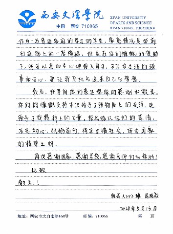古人云:滴水之恩,当涌泉相报。为培养员工自立自强、知恩感恩的良好品质,引导员工树立正确的世界观、人生观和价值观,公司面向获奖受助员工开展“一封感谢信”活动。各年级员工积极参与,以笔传情,以文绘心,向国家和社会传达最浓厚的感谢之情。