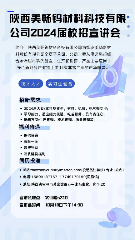 陕西美畅钨材料科技有限公司2024届校招宣进会
