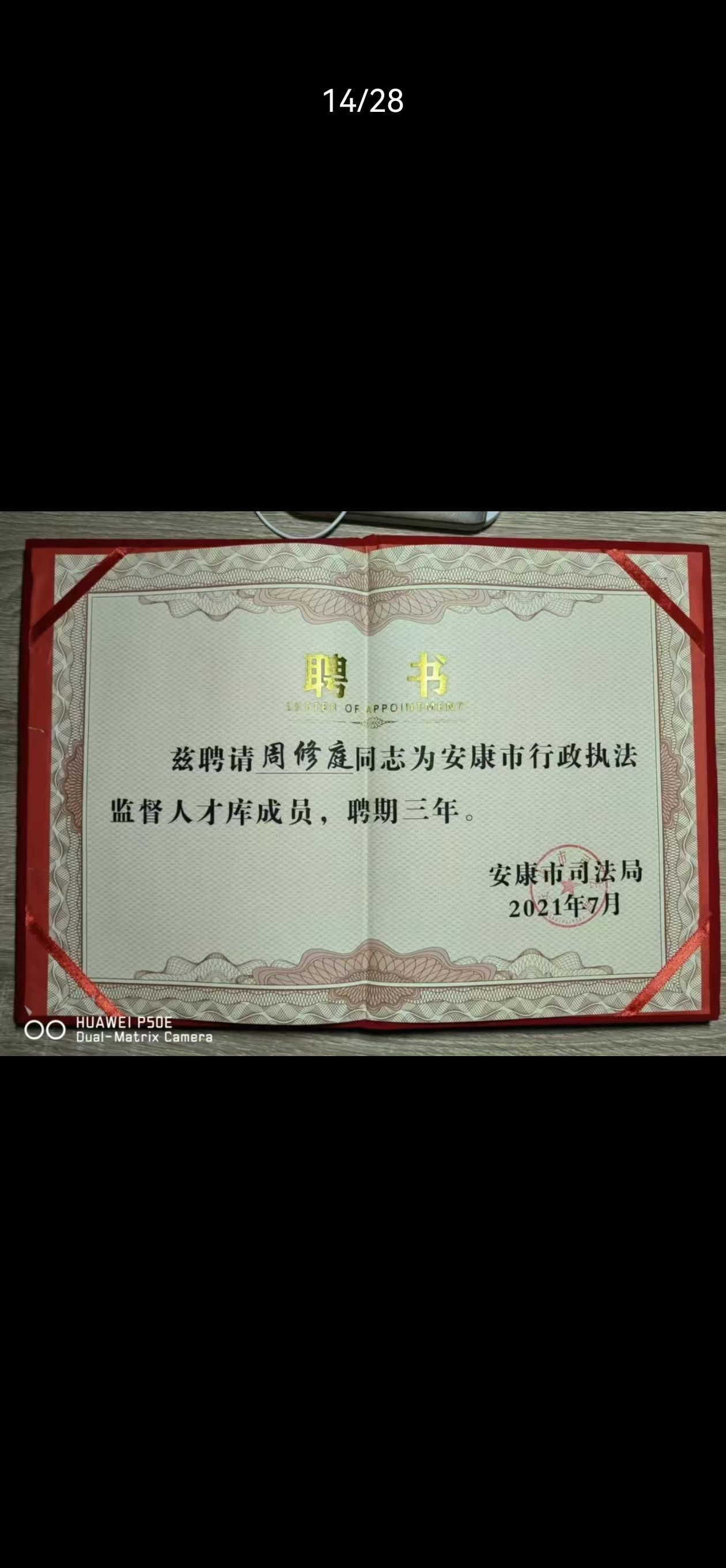 在担任司法所所长期间,同时担任安康市行政执法监督人员,带领包联村工作人员,以深入推广“321”基层治理模式为契机,全面履行法治江北职责。一是调小案,暖民心,建设乡村强法治。整合资源,重业务培训,坚持法治为本,指导化解矛盾纠纷160余件,只有3件引入民事诉讼程序,化解率为98.2%。确保达到小事不出村(社区),大事不出街道,矛盾不上交的社会治理格局。二是聚合力,造声势,矩阵普法提效能。采取点面结合,持续开展全方位、高密度、多角度、多形式的宣传动员活动,稳步提升群众满意度、知晓率,将矛盾调处工作用于以案释法,起到调解一案,教育一片的作用。三是重法治,促公正,推动治理法治化。将涉法涉诉类信访答复意见书纳入法制审查范围,出具15份江北街道法治审查意见,依法规范信访办理工作。同时提供优质高效的公共法律服务,设立了一个街道层面的公共法律服务工作站和16个村级层面的公共法律室,村(居)法律顾问进社区参与物业规范化管理、修订村规民约,做实“法律九进”,为辖区困难群众和老年人、妇女和儿童等群众共提供了22起法律援助服务,并协调5次公证服务。举办行政执法专题培训,有效提升江北法治水平。并于2023年10月被陕西省司法厅表彰为全省优秀人民调解员。