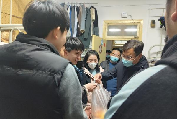 2023年硕士研究生考试在即,为鼓舞考生信心,舒缓考前压力,11月25日晚22点,公司党委委员、组织部部长袁卫敏在公司党总支书记俞华及公司全体驻校干部的陪同下,深入公司考研员工宿舍,了解员工在最后冲刺阶段的学习状态以及公司封闭管理期间生活学习困难,为考生鼓劲加油。